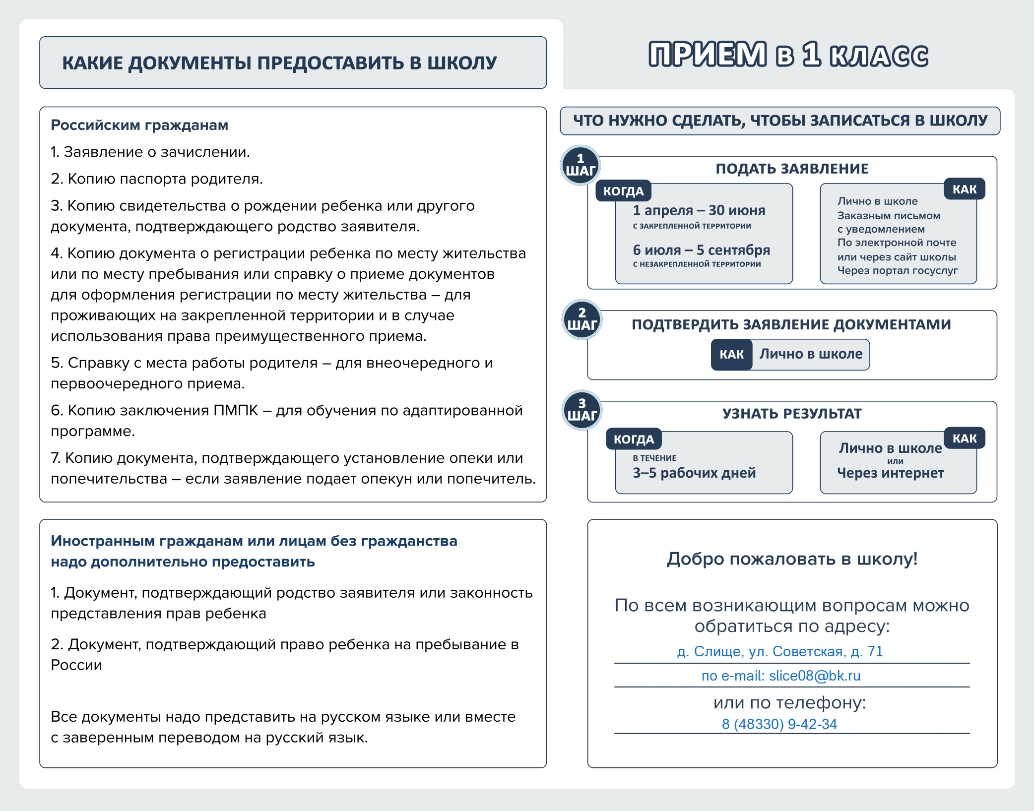 Заявление о приеме в 1 класс